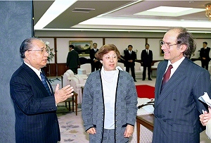 | 〈エスキベル博士〉 共通の目的を目指して進むとき、 自由や平和を志向しているとき、 人間は尋常ではない能力を発揮する。 今から45年前、ノルウェー・ノーベル委員会は1980年の「ノーベル平和賞」を、南米の人権の闘士に授与した。 「非暴力を旗印に、人権擁護を訴えて戦い、弾圧で闇から闇に葬られた人々に光を与えた」――アルゼンチンのアドルフォ・ペレス=エスキベル博士である。 それは「個人の名」においてではなく、「全員の名」のもとに受けた栄誉だった、と博士は述懐する。「先住民、社会組織、民間団体、宗教団体など、何千人もの人とともに戦い、希望も苦しみも分かち合ってきた結果だからです」 博士は31年11月、首都ブエノスアイレスの貧しい漁師の家に生まれた。「1日食事があると、次は3日後」という生活の中で、民衆に「正当な権利を求める精神」が欠如していると感じたという。 ある時、新聞配達中に知り合った古本売りから2冊の本を譲り受ける。その一つがマハトマ・ガンジーの自伝。人間の尊厳のために生きたインド独立の父の足跡は、後の人生に大きな影響を与えた。 10代になると、キリスト教のグループなどと共に人権問題に関わるように。国立美術学校と国立ラプラタ大学を卒業後は、彫刻家、画家、建築家等として、多彩な才能を発揮していく。 母校で教授を務めていた70年代前半、中南米諸国は軍事政権の圧政に苦しんでいた。隣国のチリでは、73年にクーデターが勃発。独裁者の支配により多くの国民が誘拐され、行方不明者が続出する。 銃殺、拷問、投獄……。抵抗すれば容赦なく命を奪われ、何千もの人々が亡命を余儀なくされた。 博士は、彼らをブエノスアイレスで受け入れ、第三国に出国させて、家族と安全に暮らせるよう支援する。その中で、翌74年に人権団体「平和と正義のための奉仕」を結成。創設者の一人として会長に就くと、「非暴力による闘争」をスローガンに掲げ、民衆の連帯を広げていく。 当時を振り返って博士は言う。 「人間は、人間としての共通の目的を目指して進むとき、自由や平和を志向しているとき、尋常ではない能力を発揮するものです」 「臆病に負けてしまえば、人間としての根本条件を失い、暴力と恐怖を生み出す権力に追随するだけの人間に堕落してしまいます。そうはなるまいと私は決めていたのです」 〈エスキベル博士〉 小さな集団の中に、無名でも、 個人や社会の手本となる人がいる。 そこにこそ、目を向けるべきです。 一方、アルゼンチンでは、軍政と民政による政権交代が繰り返され、不安定な時期が続いていた。 軍が全権を握り、「汚い戦争」と呼ばれる恐怖政治が幕を開けたのは1976年3月。大勢の無実の人々が逮捕され、暗殺された。ある日、突然、大切な家族を、愛する子どもを奪われた。その数は実に3万人にも上るといわれる。 権力の魔の手は、エスキベル博士にも及んだ。「平和と正義のための奉仕」の拠点に警察が押し入り、同志と長男を連行。国外にいた博士は即座に国際的キャンペーンを展開し、2日後には全員を解放させることに成功する。 しかし翌年、博士自身も渡航先のエクアドルでとらわれの身に。何とか釈放されたものの、帰国したアルゼンチンで再び拘束されてしまう(77年4月)。 投獄されたのは、4歩ほど歩くのがやっとの小さな独房だった。電気ショックなどの激しい拷問が行われたという。 それでも博士が服従することはなかった。 「どんな牢獄も、自由を幽閉することはできない」「自由は、自分自身のなかに、民衆の側に立つ決意や誓いのなかに、息づいているからです」 家族をはじめ、多くの人たちが共に抵抗し、祈り、戦っていることも博士に勇気を与えた。 最大の支えはアマンダ夫人の存在だった。弁護士らと一緒に当局に乗り込み、博士の解放を強く要求。当初、警察は拘束を否定していた。だが、夫人の毅然とした姿に、拘束場所を認めざるを得なくなったのだ。 死の淵に立たされた瞬間もあった。ある日の早朝、牢獄から出された博士は、飛行機に押し込まれる。後部座席に鎖でつながれ、上空から投げ落とす暗殺計画が実行されようとしていた。 ところが、直前で変更の指令が入り、計画は中止に。その背景には「良心の囚人」たる博士の救済を訴える、アマンダ夫人ら多くの人々の抵抗運動があった。 やがて抗議の声は世界中に広がり、14カ月もの過酷な獄中闘争の末、博士はついに釈放の時を迎える(78年6月)。 その後、運動が急激に拡大する中、博士に「ノーベル平和賞」が贈られる。軍事政権が崩壊したのは、受賞から3年後の83年。7年半ぶりに民政が復活し、アルゼンチンに“民衆勝利の夜明け”が到来したのである。 〈エスキベル博士と語り合う池田先生〉 誰しも、自分が住む地域がある。 その場所をより善くするために、 厳然と戦った証を残していこう―― そう勇敢に立ち上がったときに、 宿命は使命に変わっていく。 ![]() 来日したエスキベル博