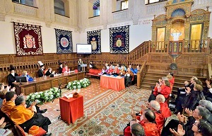 ![]() スペインのアルカラ・デ・エナーレス市にある「セルバンテス広場」。その中心に「セルバンテスの像」が立つ。この地で生まれた文豪は、400年以上がたった今も世界中で親しまれている 〈セルバンテス〉 勇気を奮って進もうではないか。 行手には千の福、万の幸せが待っている。 「世界じゅうどこを探してもこの作品より深遠で力強いものはない。これはいまのところ人類の思想の最も偉大な、そして究極の言葉である」。そう語ったのは、大作家のドストエフスキーである。 「この作品」とは、これまで140を超える言語に翻訳されてきた『ドン・キホーテ』。小説家のみならず、画家や彫刻家、音楽家まで、あらゆる分野の専門家に影響を与えた世界的名作が出版されて、今年で420周年を迎えた。 「戦さにかかわる一切の事柄は、ひたすら汗を流し、精根をかたむけ、死力をつくさないでは、しょせん実現はおぼつかないものだ」「運命が拙者にあてがうところのいかなる危険にも臆することなく身をさらし、弱き者、困窮にあえぐ者を助けるために力の限り戦う覚悟を固めております」――同小説には、魂をゆさぶる言葉が随所にちりばめられている。 著者はスペインの文豪ミゲル・デ・セルバンテス。今も読み継がれる傑作を編み出した彼の人生は逆境の連続だった。 セルバンテスは1547年、マドリード近郊のアルカラ・デ・エナーレスで生まれた。 20代初めまでの足跡は、ほとんど資料が残っていないが、一家は経済的に貧しく、幾度となく転居を余儀なくされたという。その中でも読書の楽しさを知り、子どもの頃に当時有名だった脚本家の舞台を見たことがきっかけで、劇作家になる夢を抱いたとされる。 70年、イタリア・ナポリに駐屯するスペイン軍に入隊。以降、5年にわたって従軍し、翌年には歴史に名高い「レパントの海戦」に参加する。その戦闘でセルバンテスは名誉の負傷を負い、左腕の自由を失ってしまう。 その後、兵役を終え、スペインへの帰途に就くが、トルコの海賊船に襲われ、とらわれの身に。捕虜生活は5年に及んだ。 この間、仲間と共に何度か脱走を試みる。だが計画はいずれも失敗。それでも、そうした経験を糧とし、後の作品に生かしていく。 彼は記している。 「悲惨な目にあってもじっと我慢するっていうのが、強い心にふさわしいことですよ。おいらは自分の体験からそう思うんです」 「偉大なる船長、大いなる苦労なくして大いなる事業は成りません」 「勇気を奮って進もうではないか。行手には千の福、万の幸せが待っている」 ![]() アルカラ・デ・エナーレス市を望む。同市は大学都市として古くから栄え、アルカラ大学のキャンパスと周辺の歴史地区は世界遺産に登録されている 〈セルバンテス〉 たてつづけに降りかかっている嵐は、 まもなく荒天がしずまって、われらが 順風に帆を上げるようになる前兆じゃ。 身代金が支払われ、スペインに帰国したのは33歳の時(1580年)。レパントの海戦で英雄的な働きを見せたセルバンテスであったが、国からはわずかな賃金しかもらえず、生活は困窮を極めた。 失意と屈辱の中、彼は文壇に打って出ると心を決め、85年に最初の小説を出版する。ところが作品の評価は芳しくなく、鳴かず飛ばずの状況が長く続いた。 生活費を稼ぐため、軍の食糧調達官の職に就いたことも。セルバンテスは誠意をもって仕事に励んだが、調達品の無断売却という根拠なき嫌疑をかけられ、逮捕されてしまう。数年後にも再び投獄の憂き目に。しかし、これが作家としての転機となり、獄中で『ドン・キホーテ』の着想を得る。 そして1605年、60歳を前に『ドン・キホーテ』の前編を出版する。同小説は、騎士道物語を読みふけったドン・キホーテが妄想に陥り、自ら騎士となって従者のサンチョ・パンサと共に“正義のため”の遍歴の旅に出るストーリー。二人が繰り広げる冒険の数々には、理想と現実との相克、夢や希望をもつ生き方など、人生の本質に迫るテーマが織り込まれている。 前編はスペイン文学史上未曽有の成功を収め、何度も版が重ねられた。国内外で読まれ、作家としての名声は高まったが、彼の苦難の旅は終わらなかった。版権を出版社に売り渡してしまったため、成功に見合った報酬を得ることができなかったのだ。 さらに、『ドン・キホーテ』の人気は他の作家たちの嫉妬をかき立て、偽の後編が出版される騒ぎに。貧相な模倣に終始した偽作に対し、彼は書きかけの後編の筆を急ぐ。そして偽作が出た翌年(15年)、68歳にして後編を著したのである。 その中で、セルバンテスは痛烈に喝破している。「真実というものは痩せ細りも、弱ることもない、つねに油が水のうえに浮かぶがごとく、偽りのうえに現われる」と。 『ドン・キホーテ』が完結した翌16年、セルバンテスは息を引き取った。亡くなる数日前には、遺作となった小説の献辞と序文を執筆。最後まで作家として生きた彼が紡ぎ出したドン・キホーテの言葉