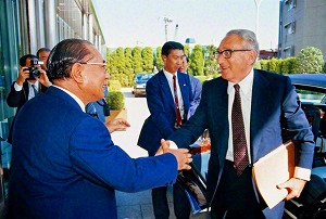 | 平和への「永遠の努力」を 人間の心と心に友情の橋を架けるのは、胸襟を開いた対話である。池田先生は、あらゆる差異を超え、世界の指導者・識者と、人類の未来について語り合い、平和の潮流を広げてきた。新連載「世界を結ぶ対話録」は、先生が出会いを刻んだ人物について記した文章と共に、その交流の足跡を紹介していく。第1回は、アメリカ元国務長官のヘンリー・A・キッシンジャー博士を掲載する。 ![]() 国務長官の執務室で行われた二人の初会見(1975年1月13日、アメリカ・ワシントンで) 何度も語りあった古き友人でも、忘れがたいのは、やはり初対面の思い出である。 キッシンジャー博士を、ワシントンの国務省に訪ねたのは、一九七五年の一月であった。 朝から小雪がちらついていた。国務省付近の木々も、枝を白く装っている。七階の国務長官執務室に案内された。 ドアを開けると、キッシンジャー長官が、立って待っていてくださった。にこにこと私に笑いかけ、どうぞどうぞと、窓ぎわのソファに導いてくださる。長官は隣の椅子に座った。 かなり大きな部屋に、通訳の方と私の三人だけである。 お会いする何年も前から、長官とは何回か書簡のやり取りがあった。ベトナム戦争和平について、私なりの提案も送った。 そうしたなか、長官から「訪米の際には、立ち寄ってほしい」との連絡を受けての表敬訪問であった。 もとより私は政治家でもなければ、外交の専門家でもない。切実に平和を願う一民間人としての語らいであったことは言うまでもない。 しかし、考えてみれば、平和の専門家などいるのであろうか。 特に、核時代にあっては、平和は人類すべてにとって、「わが身のこと」であるはずだ。 冷戦の激しかったころ、「第三次世界大戦」の可能性さえ、杞憂と断言できる人はいなかったはずである。 ![]() 池田先生がキッシンジャー博士を聖教新聞本社(当時)に迎える(1986年9月4日)。 会見は前日に続いて2日間で6時間。多岐にわたるテーマで語り合った ――博士は十五歳の時、ドイツからニューヨークに、一家をあげて、やってきた。一九三八年である。ヒトラー政権下、ユダヤ人迫害は日に日に激しくなっていた。 父母と弟が一緒だった。財産の国外持ち出しは禁じられ、着のみ着のままである。後に博士は、私に語ってくださった。 「若くして私が悟ったことがあります。幼いころ、私たち一家はすべてを放棄して故国ドイツを出なければならなかったので、人生において、財産や社会的地位は、はかないものだと知ることができました。 その結果、『自分が心から信ずることを、毎年必ず実行すべきである』との信念をもつにいたりました。もし結果が悪かったとしても、少なくとも『自分として、なすべきことはやりきった』という実感が残ります」 教師であった父君は、アメリカでは教職につけず、工場の帳簿係になった。薄給であった。しかも大恐慌時代である。家計は苦しく、キッシンジャー少年は、昼間は髭剃り用ブラシの会社で働き、夜学に通った。 ドイツに残った親族のうち、十三人もが強制収容所で亡くなったという。少年時代の原体験は博士に、人間のもつ邪悪と野蛮を骨身に徹して教えたに違いない。 ![]() 聖教新聞本社(当時)での会見を終え、キッシンジャー博士を見送る池田先生(1988年7月13日) 博士は「冷徹な現実主義者」として知られ、「理想主義者」の対極のごとく描かれることも多い。しかし、ことは、そう簡単ではない。理想なき現実主義とは、近視眼の「現状追随」にほかならない。その結果、現実をリードするよりも、現実に引きずられる結果になりかねない。 反対に、現実の冷酷さに目をつぶる理想主義は、理想というよりも空想であろう。いわば遠視眼の病である。近視眼でも遠視眼でもなく、正視眼でなければならない。必要なのは「新しい現実」を生み出すことであり、「世界は変えられる」という希望を示すことだからである。それを実現した博士が語っておられた。 「どんな偉大な事業も、はじめは、すべて『夢』にすぎなかったのです。だから必要なのは勇気です。前人未到の道を一人征くには、勇気が必要なのです。真に新しいものは、何ごとであれ、人々の不評を買うものです。だから勇気が必要なのです」 こう言われたこともある。 「私は自分に宗教心があるとは思いません。しかし私は、人間が理解できないさまざまな力の存在を信じていますし、本質的に不可知の部分があることも信じています。したがって、人間は常に、畏敬の念と謙虚さをもつ必要があるのです。 そうした尊敬の念がなければ、国家権力の執行にも歯止めがなくなります。産業社会の結合力も失われ、人間の個性が真に認識されることもないでしょう」 多くの世評には表れない“人間キッシンジャー”の奥行きを示す発言として、私の心に残っている。 ◆ ◆ ◆ ともあれ、いかなる未来も、これから「どうなるか」ではなく、「どうするか」である